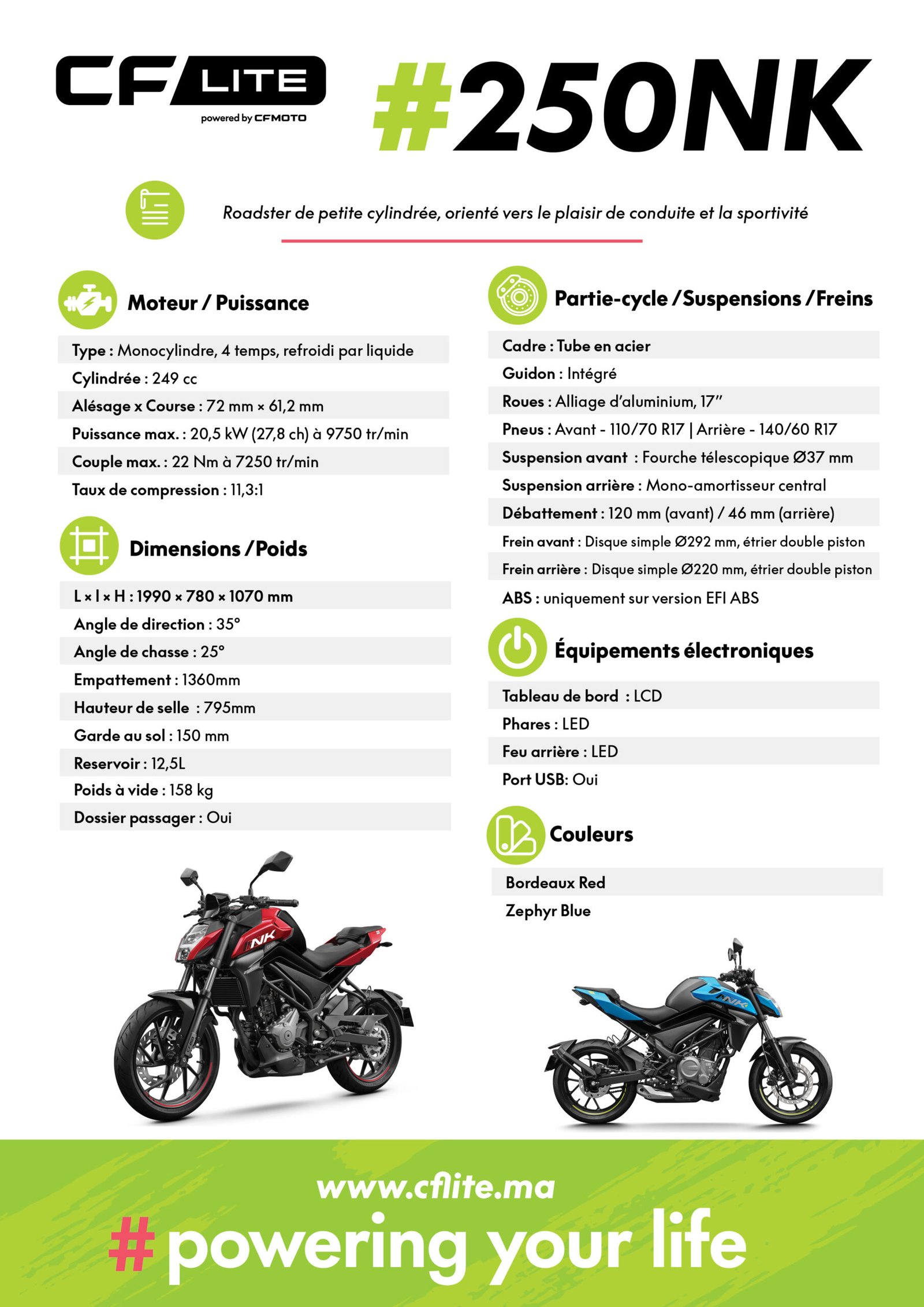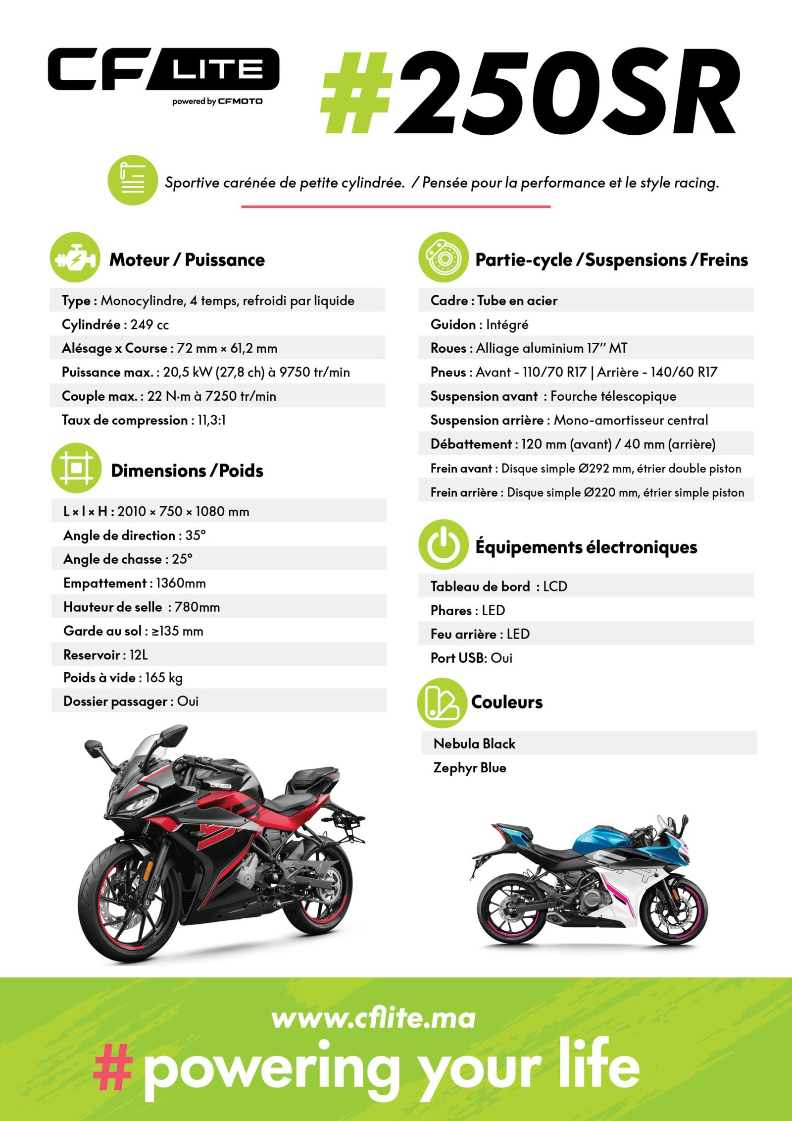 Chaque modèle CFLITE est conçu pour offrir des sensations fortes, une précision de conduite remarquable et un style audacieux qui se démarque sur la route. Grâce à une qualité de fabrication irréprochable, des moteurs performants et des équipements modernes, CFLITE s’impose comme le choix évident des motards qui recherchent l’émotion, la fiabilité et la distinction.