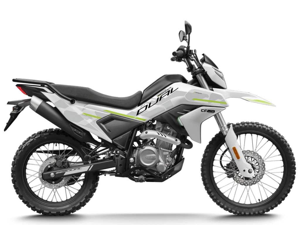 La CFLITE 250DUAL incarne l’équilibre parfait entre polyvalence, style et performance. Dotée d’un moteur monocylindre liquide de 249 cc délivrant 18 kW à 8 000 tr/min et un couple de 22,5 Nm à 7 000 tr/min, elle offre une réponse souple et dynamique pour la ville comme les chemins légers. Avec sa garde au sol généreuse, ses suspensions solides, son éclairage full LED et la possibilité d’une version ABS, cette moto séduit les amateurs d’aventure urbaine sans compromis.